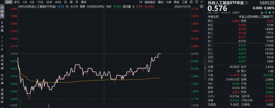 12月10日午后,重点布局国产AI产业链的科创人工智能ETF(589520)随市震荡攀升,当前升至水面附近,值得关注的是,科创人工智能ETF(589520)近2日连续获资金净流入最大的证券公司,合计金额695万元,或有资金看好国产AI后市表现,积极进场抢筹!